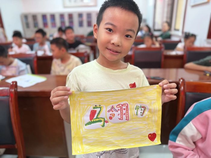 名字彩繪·認識自我。孩子們拿起彩筆,精心裝飾自己的名字。在志愿者的指導下,他們不僅學習了名字的標準讀音和筆畫,更自豪地用普通話向小伙伴介紹名字的寓意和創作構思,將漢字藝術與自我表達完美融合。