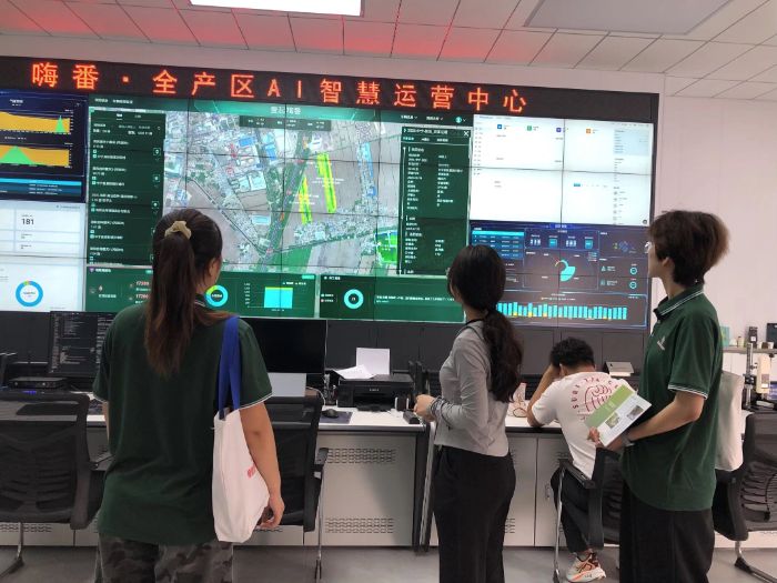 志愿者們實(shí)地參觀“嗨番·全產(chǎn)區(qū)AI智慧運(yùn)營(yíng)中心”,深入了解當(dāng)?shù)乩錄鍪卟水a(chǎn)業(yè)園項(xiàng)目的智慧化發(fā)展模式,感受科技賦能農(nóng)業(yè)的生動(dòng)實(shí)踐。在“嗨番·全產(chǎn)區(qū)AI智慧運(yùn)營(yíng)中心”,志愿者們通過實(shí)時(shí)數(shù)據(jù)大屏直觀了解到產(chǎn)業(yè)園的整體運(yùn)營(yíng)情況:智慧大棚內(nèi)的溫濕度、光照等數(shù)據(jù)實(shí)時(shí)傳輸至系統(tǒng),AI算法根據(jù)參數(shù)自動(dòng)調(diào)節(jié)設(shè)備;集約化育苗中心通過智能控制系統(tǒng)精準(zhǔn)把控育苗環(huán)境,保障幼苗成活率。這場(chǎng)“數(shù)字農(nóng)業(yè)”的生動(dòng)實(shí)踐,讓青年學(xué)子們對(duì)鄉(xiāng)村振興的科技力量有了全新認(rèn)識(shí)。