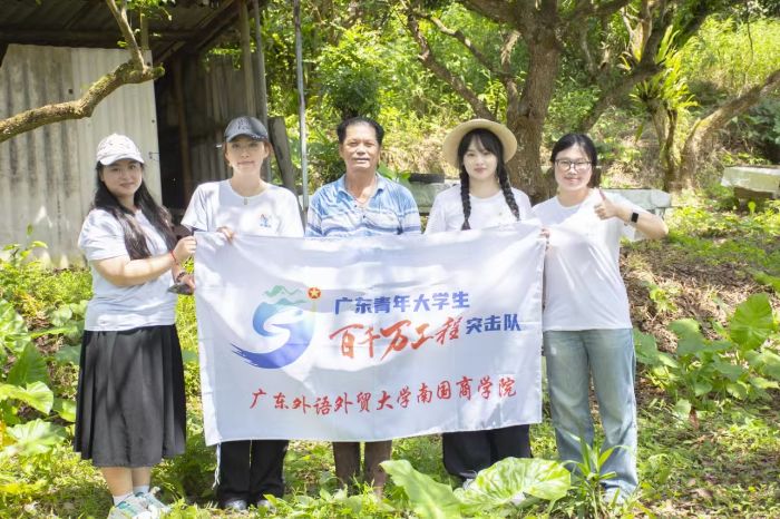 清晨的料坑村,山霧漫過青翠的山林,與蜜蜂打了多年交道的袁日炳早早便蹲在蜂場邊。作為深山里的養蜂老手,這條“蜂”雨路,是一代蜂農“守著甜蜜,闖過風雨”的真實寫照。為探尋他扎根30年背后的故事,2025年7月,廣外南國東揚隊“蜂起云涌”調研團走進了這片山林。
