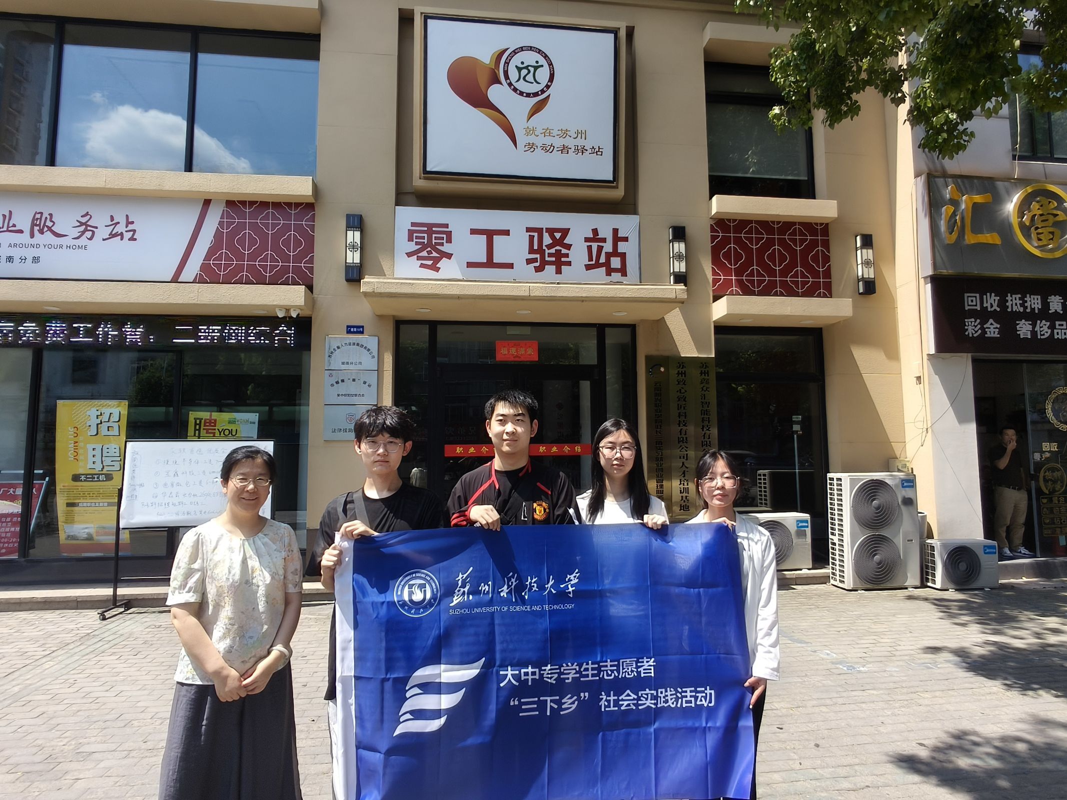 圖為團(tuán)隊(duì)指導(dǎo)老師與成員于蘇州市吳中區(qū)零工驛站前合影 舒美琪供圖
