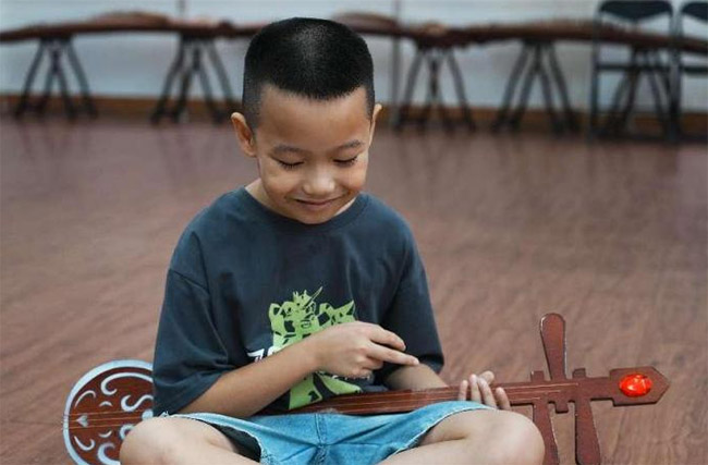 在認(rèn)知啟蒙階段,隊員們帶著三弦樂器與木魚道具,教孩子們演唱木魚歌新編《甜甜蜜蜜的糖不甩》中的“糖不甩,糖不甩,圓圓滑滑一粒粒。”等經(jīng)典唱段。孩子們以課桌為鼓、雙手為槌,跟著節(jié)奏拍出清脆旋律,在一次次互動探索中,逐步走進(jìn)這門蘊含民生百態(tài)的藝術(shù)世界。一曲唱罷,余音繞梁,不少孩子表示,通過課堂接觸,他們對木魚歌有了全新認(rèn)知。