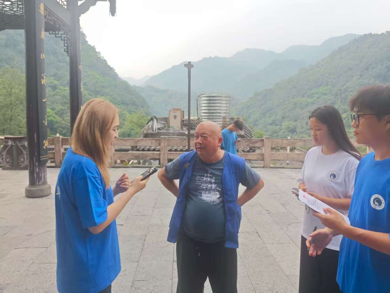 調(diào)研首站,團隊來到了峨眉山標(biāo)志性景點之一的清音仙境景區(qū)門口。這里流水潺潺、古木參天,既是游客感受峨眉山“清音繞耳、仙境入懷”的熱門打卡地,也是了解大眾對峨眉山自然資源認(rèn)知的重要窗口。團隊成員提前設(shè)計了涵蓋“峨眉山自然資源類型認(rèn)知”“生態(tài)保護參與意愿”“景區(qū)資源利用建議”等維度的調(diào)查問卷,在景區(qū)入口處設(shè)置