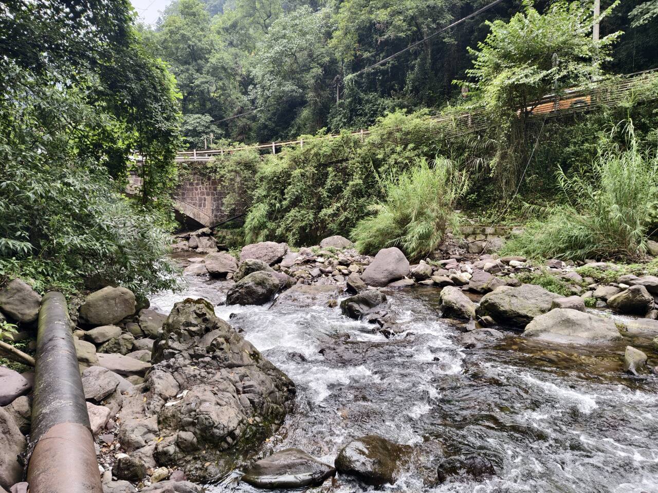 離開清音仙境,團隊前往龍門硐河上游,開展河流污染度調(diào)研與垃圾清理志愿活動。龍門硐河作為峨眉山區(qū)域重要的地表水體,其水質(zhì)狀況直接關(guān)系到周邊生態(tài)環(huán)境與居民生活。抵達(dá)調(diào)研點后,成員們按照分工,一部分人攜帶水質(zhì)檢測工具,在河流不同斷面采集水樣,檢測pH值、溶解氧、濁度等關(guān)鍵指標(biāo);另一部分人則手持垃圾袋、夾子等工具,沿著河岸開展垃圾拾撿。