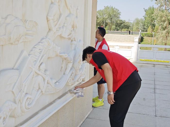 成員們?yōu)榧o念碑擦去灰塵劉政洋供圖