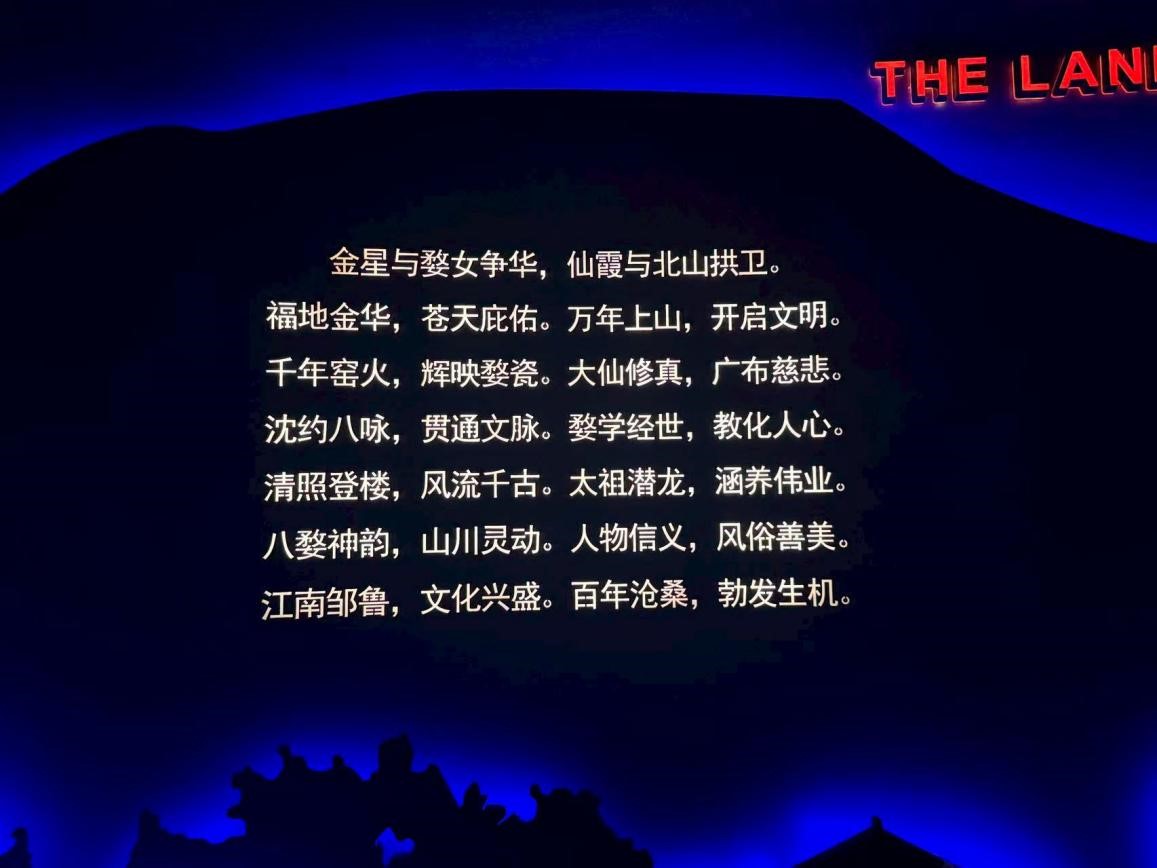 進門直奔“八婺古韻——歷史學視野中的金華大地”展區,在幽暗的環境中一段文字亮眼。