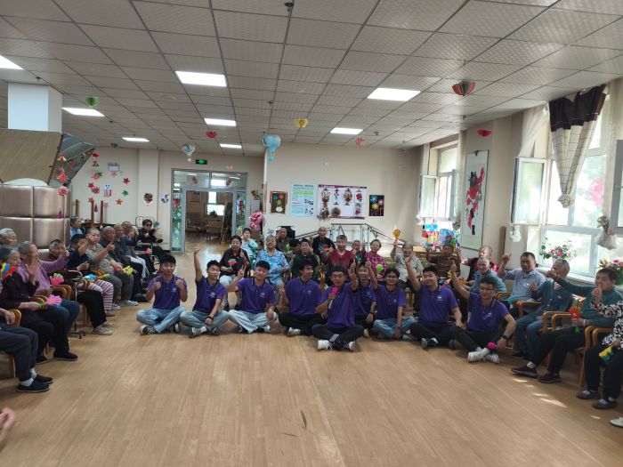 隨后,相聲表演登場,隊員孫久龍,王健化身 “相聲演員”,以 “敬老愛老” 為主題,結合生活中的趣事創作臺詞,幽默的語言、夸張的表情,逗得老人們哈哈大笑,現場氣氛瞬間達到高潮。匯演過程中,隊員馬九花用相機記錄下老人們的笑臉與匯演的精彩瞬間,不少老人還主動與隊員合影留念。“好久沒這么開心了,孩子們的表演太精彩了,看著他們就覺得有活力。” 一位老人笑著說,臉上的笑容格外燦爛。