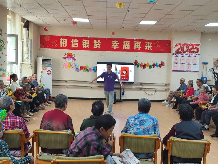 6 月 21 日,實踐隊將重點放在 “健康關懷” 模塊。隊員陶潤恒、賀繼鵬提前查閱大量老年健康資料,針對老年人高發的高血壓、糖尿病等慢性疾病,精心準備了健康知識講座。講座現場,陶潤恒結合圖文并茂的 PPT,用通俗易懂的語言講解慢性疾病的預防要點,比如高血壓患者如何控制鹽的攝入量、糖尿病患者的飲食禁忌等;賀繼鵬則現場演示血壓測量方法,手把手教老人們如何通過簡單方式監測自身健康狀況。講座結束后,隊員們還為老人們發放健康科普手冊,并耐心解答老人們提出的健康疑問。“以前總擔心自己的身體,聽了講座才知道,原來日常飲食、作息調整對控制病情這么重要,太感謝這些孩子了。” 一位患有高血壓的老人感激地說。此次健康講座,不僅讓老人們掌握了實用的健康知識,更提升了他們的自我保健意識。