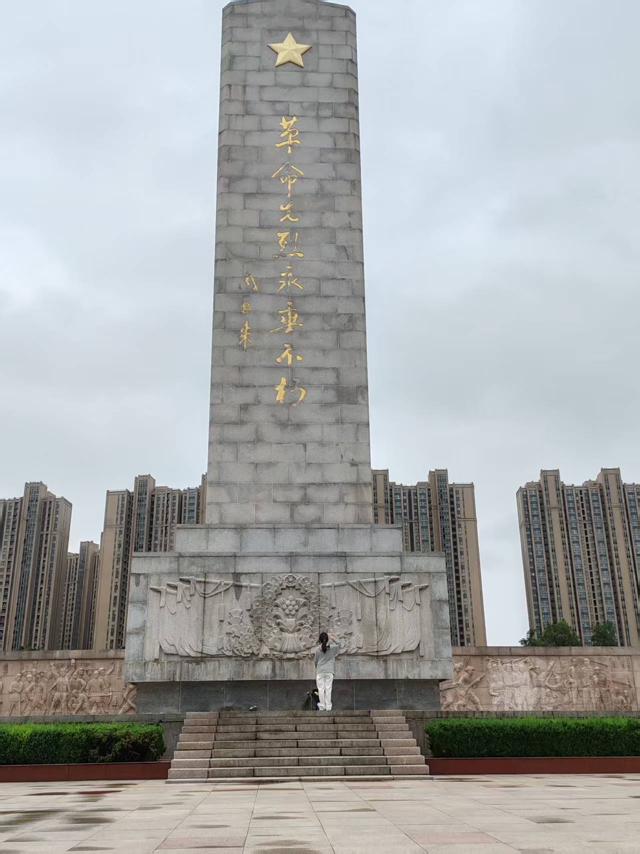 在鄭州烈士陵園,隊員們前往拜謁無數安葬于此的革命先輩,并了解他們的事跡,學習他們的精神,認識了“恨不抗日死,留作今日羞”的吉鴻昌、“盤腸大英雄”侯玉全以及黃麻起義領導人吳煥先等烈士。他們的肉身雖早已在戰爭的摧殘下潰爛,但他們的精神永遠與所有為保衛中原、解放中原而犧牲的烈士一同閃耀在形如劍柄的革命先烈紀念碑之上。