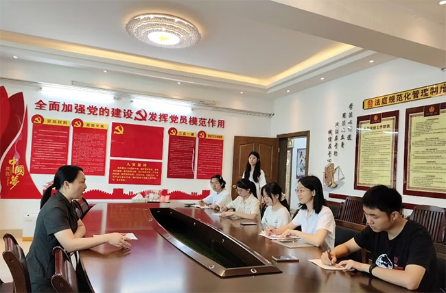 在桐木鎮桐木法庭,實踐團通過莫庭長了解到,這里推行“巡回法庭”模式,將審判場所從固定法庭搬至村寨。法官現場開庭,邀請村委干部、寨佬等參與調解,將法律宣講與寨佬的民俗協商結合。如贍養糾紛中,法官、寨佬與當事人圍坐拉家常,講法理、說人情,最終促成和解。這種“哪里有糾紛,法庭就到哪里”的模式,讓矛盾化解在村頭巷尾,既降低了群眾訴訟成本,又讓法治溫暖直抵人心。