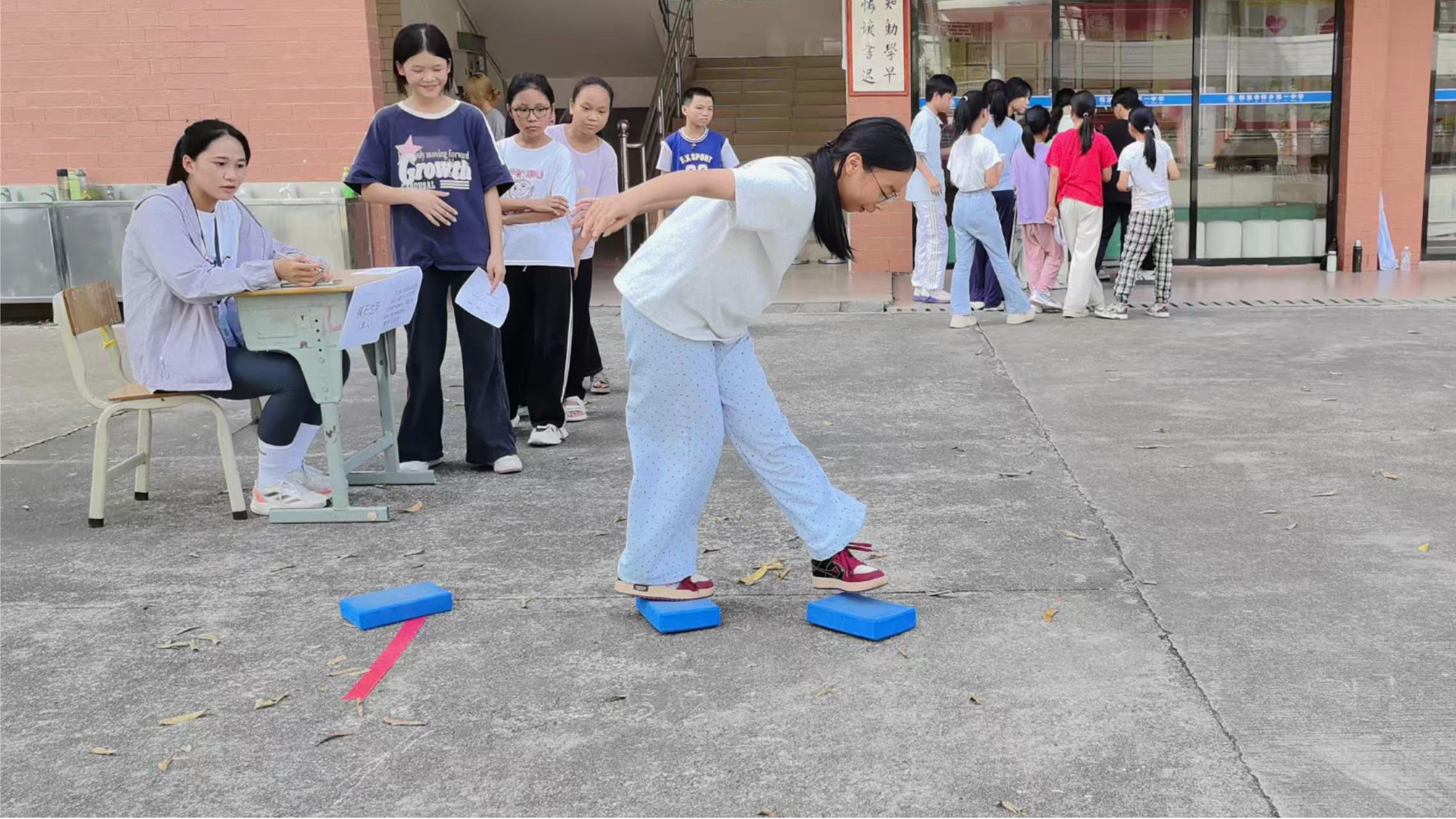 圖為學生進行“摸石過河”。通訊員 李淑玲 供圖