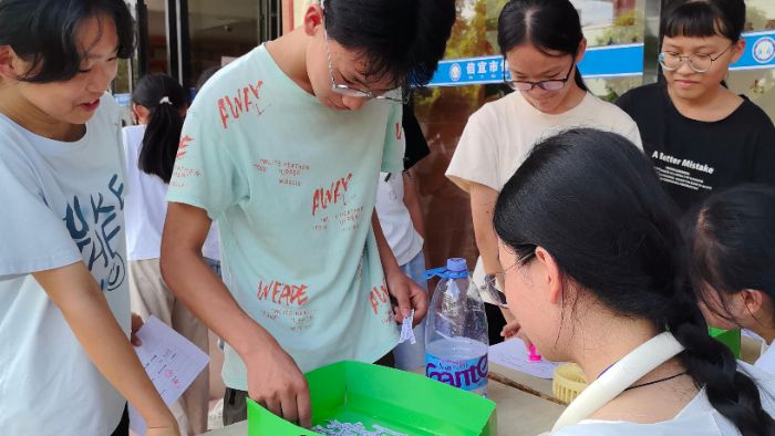 7月14日至7月19日,華南師范大學書畫協會流墨實踐服務隊于信宜市懷鄉鎮第一中學舉辦“流墨執筆,筑夢信宜”線下夏令營暑期社會實踐活動。為響應國家全面推進鄉村振興戰略和“十四五”文化發展規劃的號召,傳統文化傳承與創新成為社會關注焦點,強調以青年力量賦能傳統文化活態傳承。在此背景下,流墨隊藝體組以參加夏令營的學生為對象組織開展了本次“國風拾萃之旅”趣味活動。趣味活動的組織者由藝體組的黎育君、劉靜、李淑玲擔任,其他隊員協助工作。
