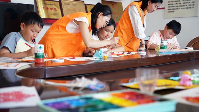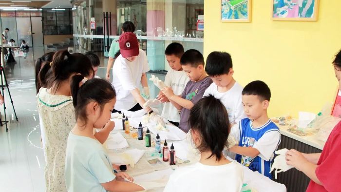 圖為滿天星志愿服務隊成員帶領孩子們體驗扎染技藝。宋欣棟供圖