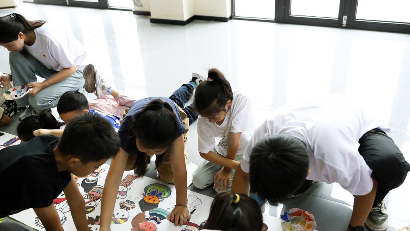 在園博園社區中,滿天星志愿服務隊還與孩子們共同完成了八米長的民族團結主題畫卷。畫卷上繪制了56個身著民族盛裝的卡通形象輪廓,孩子們分組協作,為這些形象涂上鮮艷的色彩。在繪制過程中,志愿者們向孩子們介紹了不同民族的服飾特點和文化特色。這幅色彩絢麗的長卷寓意中華民族大家庭和睦共處、團結奮進,成為此次實踐活動的重要成果。