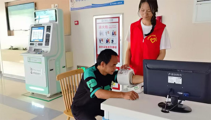 7月21日至8月2日,劉玉梅同學在江西省贛州市于都縣人民醫院開展志愿服務,協助患者有序就醫,引導使用自助機完成掛號、繳費、候診、檢查等全流程操作,用耐心與細心為患者就醫“減負”。