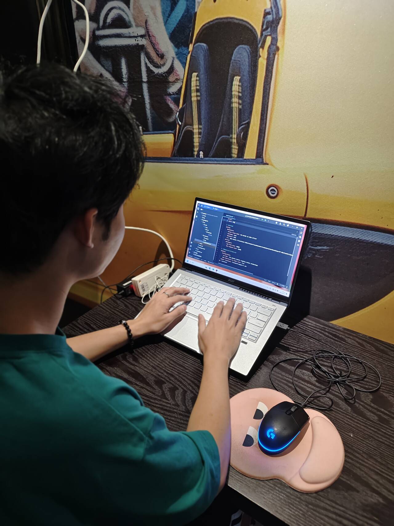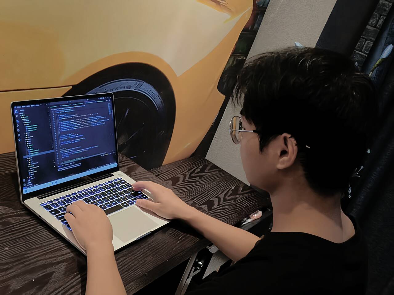 圖為推普小隊隊員編寫系統代碼。張棋 供圖