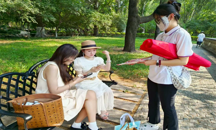實踐服務團赴煙臺掖縣公園進行宣傳科普工作 牛蘊潔 供圖