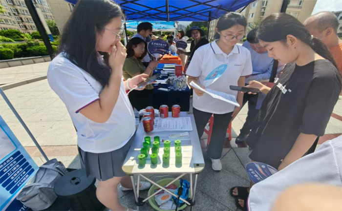 實踐服務團為各年齡段學生學生發放宣傳科普資料 劉含笑 供圖
