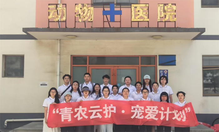 實踐服務團師生在青島農業大學動物醫院前合影 劉含笑 供圖