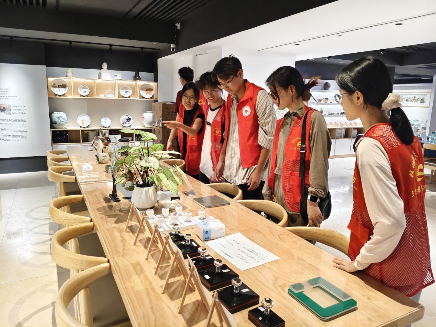 圖為實(shí)踐隊(duì)員欣賞和交流討論非遺手工藝品 陳麗瓊供圖