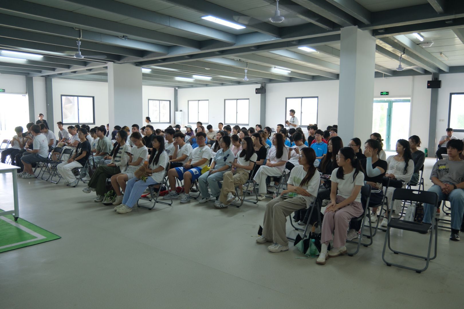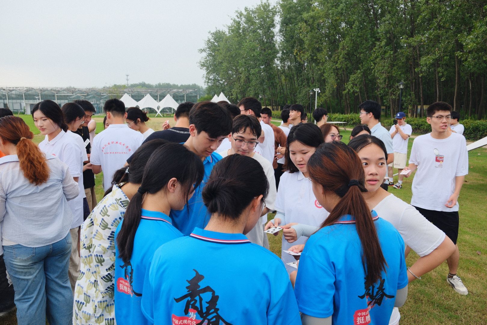 第二天上午,師生們在風景如畫的大圩·森境戶外訓練基地開展了豐富多彩的團隊拓展訓練。通過“多項拔河”“擊鼓傳球”等集體項目,同學們不僅在競技中鍛煉了協作與溝通能力,也更加理解了團隊精神在鄉村振興中的重要意義。巢湖學院學子在比賽中表現突出,展現了優秀的綜合素質。下午,大家轉場至海軒文化數字產業園,參加了由合肥市勞動模范、大圩鎮商會會長吳群學主講的電商助農專題培訓。吳會長結合真實案例,為大家講解了農產品電商的運營技巧與文化敘事方法,強調“用好直播工具,講好鄉村故事”,為同學們打開了“互聯網+農業”創新思維的大門。