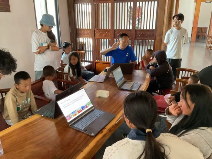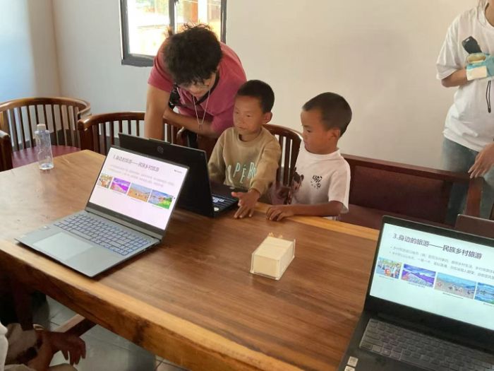 活動當天,陽光透過窗戶灑在孩子們純真的笑臉上,現場座無虛席,孩子們眼神中滿是對知識的渴望。余志勇老師沒有采用生硬的理論講解,而是以親切溫和的語氣、通俗易懂的語言,將旅游知識與孩子們的生活緊密相連。他先是細致解讀了紅色旅游、民族傳統體育旅游、民族鄉村旅游三大概念——在介紹紅色旅游時,他結合涼山州本地的紅色遺址,講述革命先輩們在這片土地上奮斗的故事,讓孩子們明白家鄉的每一寸土地都承載著厚重的歷史;談及民族傳統體育旅游,他興致勃勃地說起當地的摔跤、賽馬等特色體育活動,告訴孩子們這些充滿活力的習俗不僅是家鄉的驕傲,更是吸引游客的獨特魅力;而在民族鄉村旅游部分,他展示了涼山州獨具特色的彝族村寨、壯麗的山水風光圖片,從家鄉的梯田到古老的樹木,從特色手工藝品到美味的民族美食,一一向孩子們介紹,讓原本抽象的“旅游價值”,變成了孩子們身邊看得見、摸得著的“好風光”。