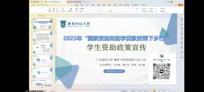 為擴大宣傳影響、覆蓋更多人群,8月12日,實踐團隊通過騰訊會議開展線上政策宣講會。隊長詹雪玄詳細介紹了國家資助體系結(jié)構(gòu),并重點針對潮南區(qū)生源地貸款辦理流程進行說明。她特別強調(diào):“潮南區(qū)辦理地點在潮南區(qū)教育局一樓、礪青中學(xué)及東山中學(xué)。教育局辦理時間為2025年7月21日至9月19日,學(xué)校辦理點時間為7月21日至8月31日。”實踐團隊其他成員在聊天區(qū)實時回應(yīng)觀眾提問,解答“如何認定家庭經(jīng)濟困難”“貸款額度如何確定”“逾期是否影響征信”等具體問題。