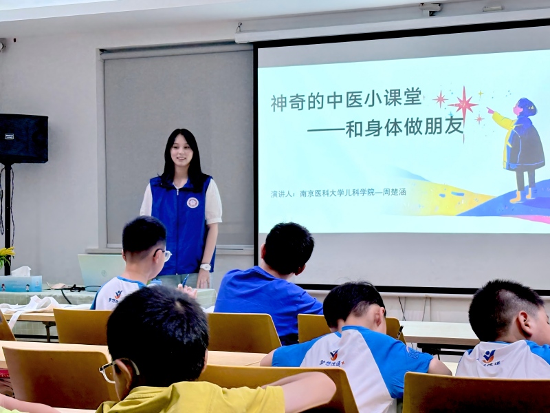 除了日常生活中有趣有用的小知識,“稚愛”暑期實踐團同樣看重傳統文化的影響力,團隊將中醫藥知識與身體聯系起來,通過通俗易懂的PPT講解,聯系人體穴位按壓互動,把從前看似遙遠的中醫藥知識帶到小朋友們的身邊。