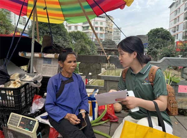 四、、安全護航:災后食品安全宣講暖民心 結合近期洪澇災害后的實際需求,實踐團聯合榕江縣開展“舌尖上的安全”專項宣講。在臥龍社區,和工作人員用苗漢雙語講解災后食品儲存、飲用水消毒等知識,發放圖文手冊150份;在農貿集市,設立快速檢測點,篩查腌制品、蔬菜等30余批次;將食品安全要點編入侗族大歌曲調,通過“唱安全”強化記憶,筑牢災后健康防線,體現統一戰線服務民生的溫度。