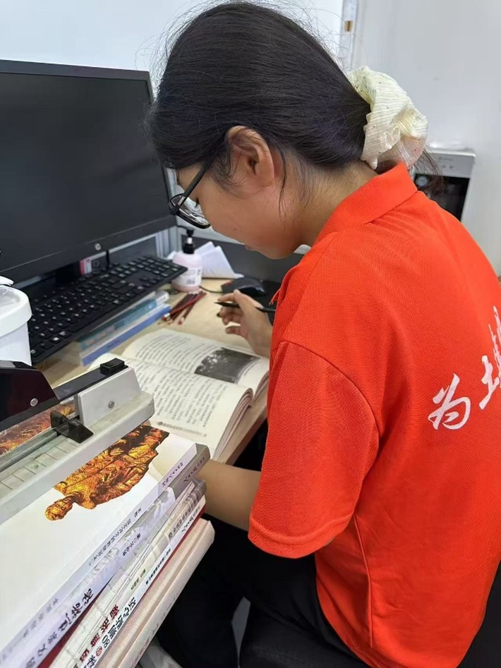 圖為“蒲公英”實踐團隊員整理資料中國青年網(wǎng)通訊員溫?fù)P銘攝