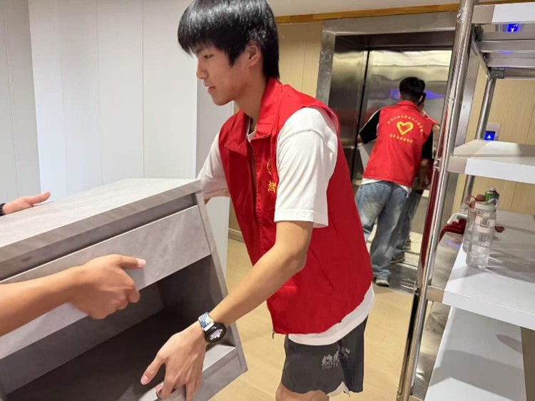 圖為“蒲公英”實踐團隊員在搬運物品中國青年網(wǎng)通訊員楊明馨攝