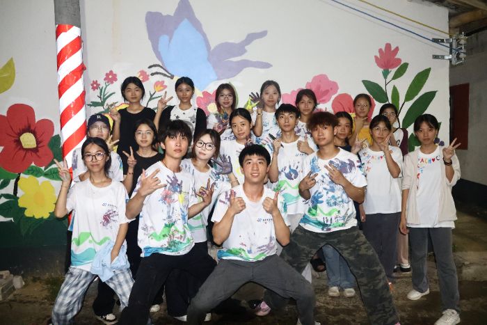 ▲圖為突擊隊成員同前來參觀墻繪制作的村民合影 文脈續(xù)薪:青春力量澆灌傳承新芽 當(dāng)最后一筆色彩落下,下西村的墻面已然蛻變?yōu)闀?ldquo;說話”的文化地標(biāo)——路過的村民會指著墻繪給孩子講木雕故事,游客會駐足拍照記錄非遺魅力。“比起單純的課堂講解、手冊宣傳,這種看得見、摸得著、能互動的藝術(shù)形式,更能讓文化在鄉(xiāng)土里扎下根。”突擊隊指導(dǎo)老師表示。