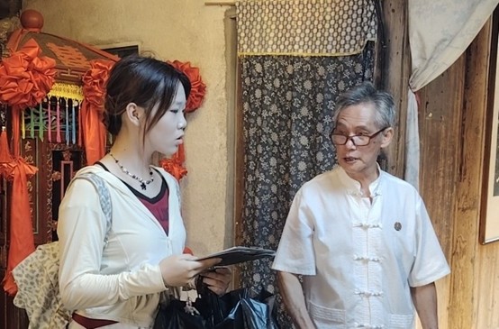 團隊成員采訪五夫鎮(zhèn)本地居民了解“魚龍戲”相關(guān)文化
