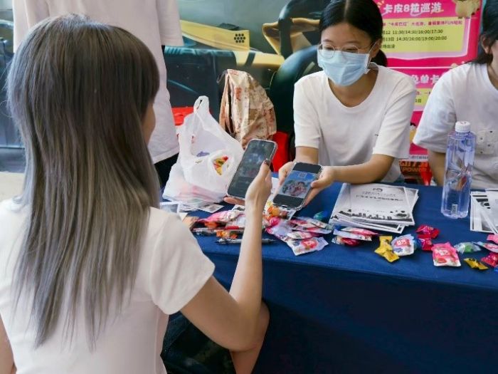 圖3:實(shí)踐團(tuán)隊(duì)員為參與活動(dòng)的市民發(fā)放糖果獎(jiǎng)品 鐘欣琪攝