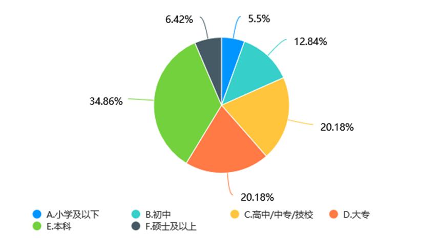 3.您的文化程度:A.小學及以下B.初中C.高中/中專/技校D.大專E.本科F.碩士及以上
