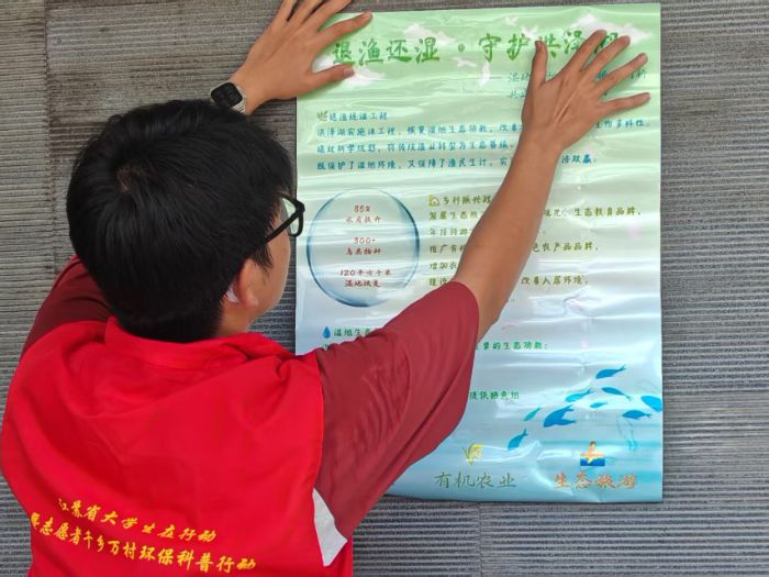 在本次“三下鄉”暑期社會實踐活動中,團隊成員們深入洪澤湖沿岸實施“退漁還濕”的相關鄉鎮與社區,積極運用自身專業技能,向大眾傳播生態環保的理念,宣傳濕地保護相關知識。我們深刻體會了退漁還濕與鄉村振興的落地實施現狀,并在實踐中真正看見了政策背后落地實施的真實狀況。在這段實踐里,我們不斷汲取經驗,收獲成長。我們將持續跟進洪澤湖退漁還濕工程的推進,以及周邊產業的轉型升級態勢。作為一名資環學子,期待未來有機會能為濕地生態保護與社會經濟發展奉獻青年力量。