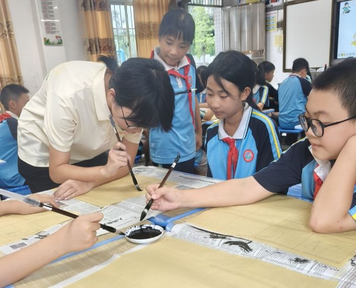 2024年7月中旬,華南師范大學言途實踐團深入廣東省惠州市博羅縣的柏塘中心小學,開展為期一周的三下鄉實踐活動。在這里,他們和孩子們一起上課,在文化墨香的浸潤中一同成長。