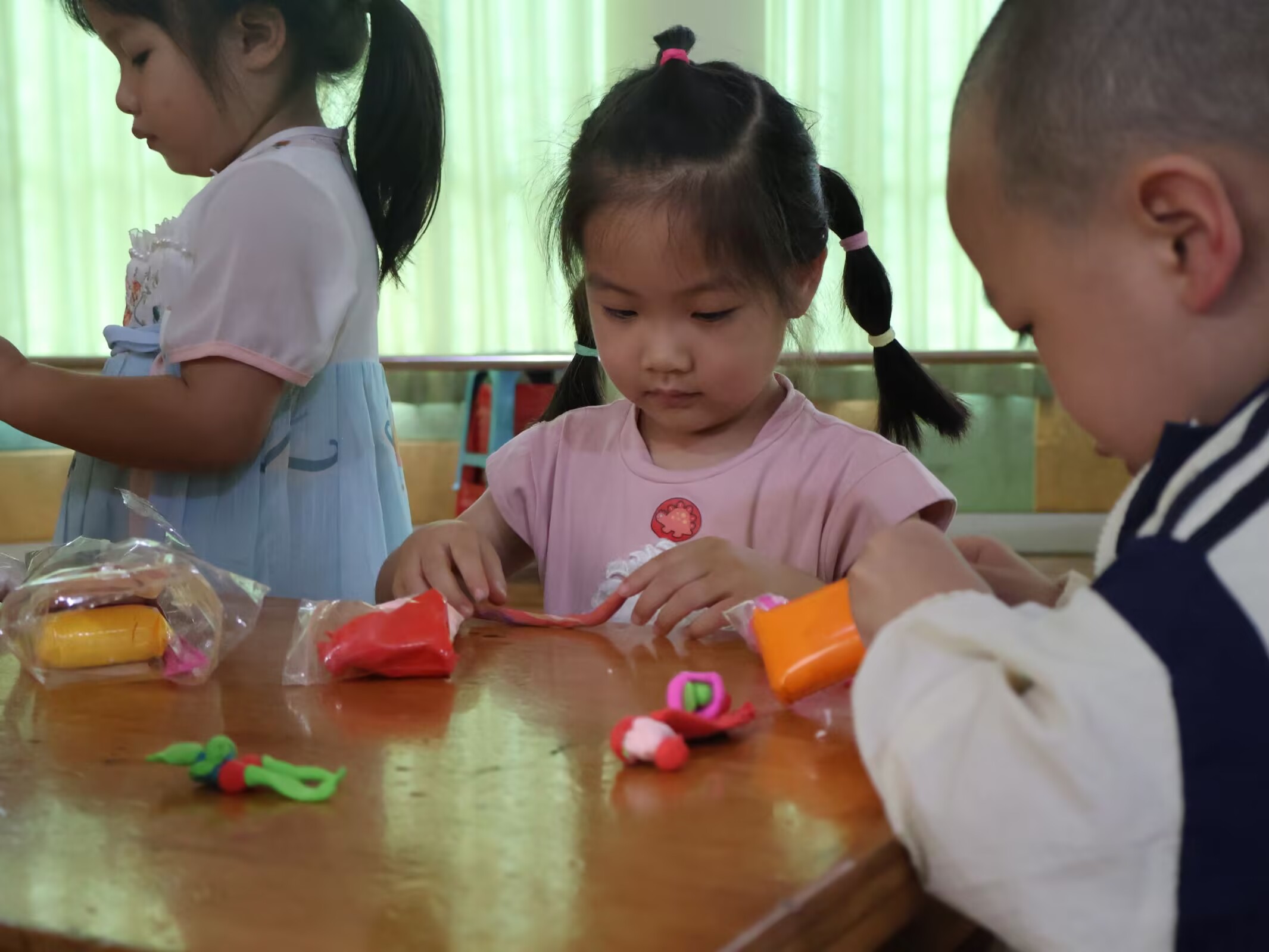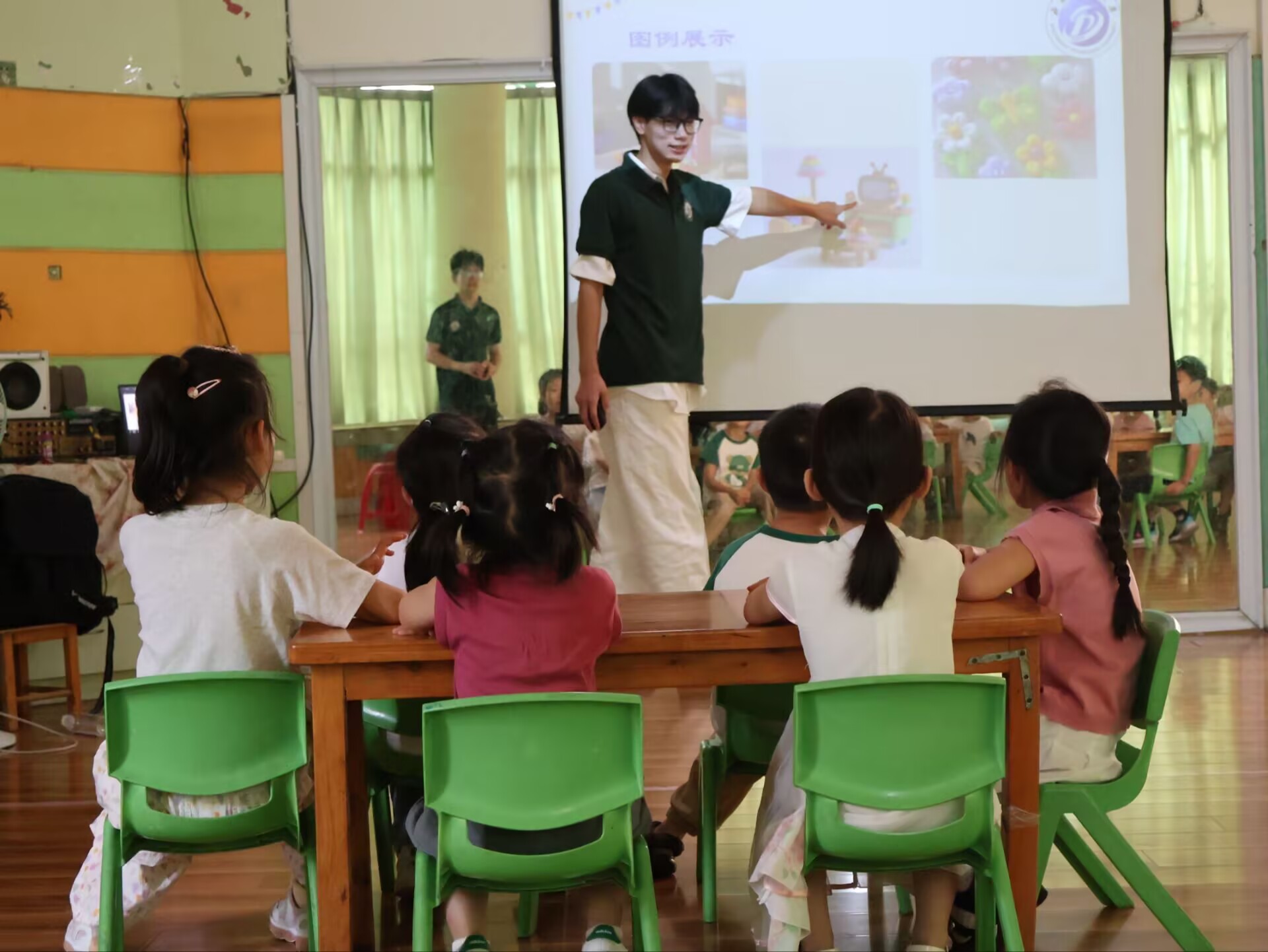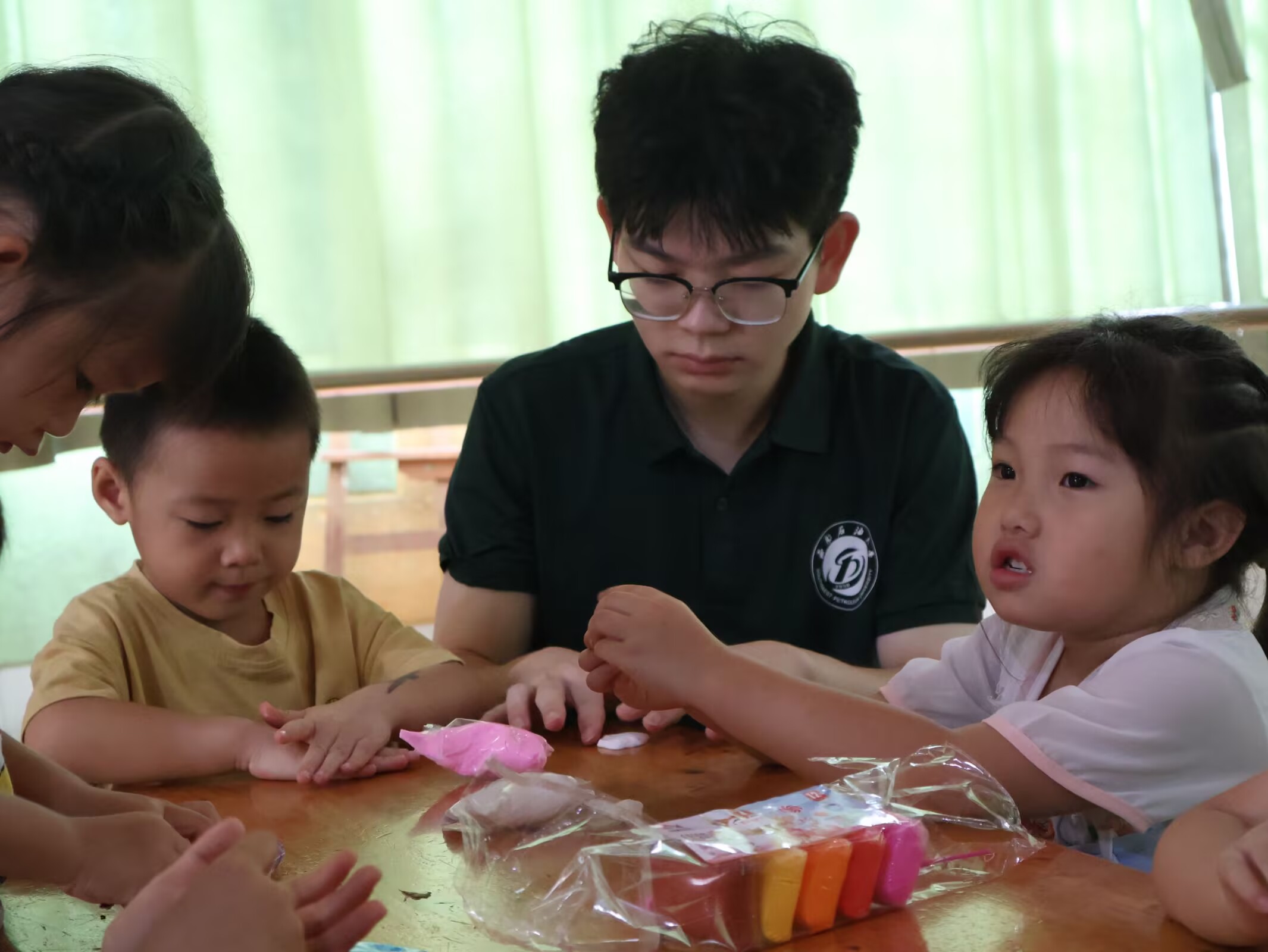 活動(dòng)準(zhǔn)備階段,實(shí)踐隊(duì)隊(duì)員在確保各項(xiàng)環(huán)節(jié)準(zhǔn)確無(wú)誤后,迎接幼兒園小班學(xué)生的到來(lái)。課程開(kāi)始,授課隊(duì)員以親切的引導(dǎo)語(yǔ)幫助小朋友們快速進(jìn)入課堂狀態(tài),詳細(xì)講解了粘土的性質(zhì)與可塑性,展示了粘土作品圖片。隨后,隊(duì)員們帶領(lǐng)小朋友動(dòng)手操作,指導(dǎo)他們用粘土捏出各類物品。課堂上,孩子們專注投入,積極參與,動(dòng)手能力與想象力得到了有效鍛煉。