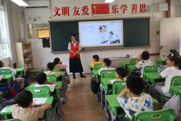 他們以“生活化場景+經典典籍”為切入點,將理論講解巧妙地融入孩子們熟悉的日常生活。比如,針對“燒烤后媽媽為何泡菊花茶”這一常見現象,志愿者們旁征博引,不僅詳細闡述了《神農本草經》中關于菊花的記載,還深情吟誦宋代詠菊詩詞,在詩詞與藥材的交融中,讓孩子們真切感受到中醫藥文化與生活的緊密聯系,使原本抽象的中醫藥知識變得可知可感、生動鮮活。