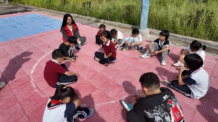 休息間隙,思念與溫暖在操場(chǎng)蔓延。孩子們圍坐成圈,話題總繞不開(kāi)“爸爸媽媽”——這些留守兒童提起遠(yuǎn)方的父母,語(yǔ)氣里帶著藏不住的思念,可說(shuō)到與父母的點(diǎn)滴回憶時(shí),臉頰又會(huì)漾起明亮的笑。隊(duì)員們靜靜圍在孩子身邊,聽(tīng)著一段段帶著期盼的回憶,輕聲安慰:“爸爸媽媽雖然不在身邊,但他們肯定天天想著你呀”“你好好吃飯、好好訓(xùn)練,就是給他們最好的‘禮物’”,溫柔的話語(yǔ)像秋陽(yáng)般,悄悄熨帖著孩子們的心房。
