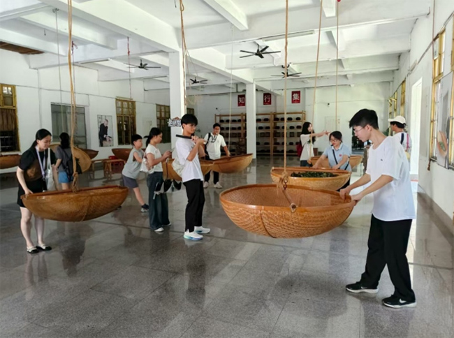 齒輪轉動誠毅魂 實踐隊首站來到安溪鐵觀音集團。在廠史館內,隊員們通過老照片與舊器械,了解茶廠從手工制茶到機械化、品牌化的發展歷程,深刻體會“農業的根本出路在于機械化”的實踐真知。在安溪茶廠舊址,隊員們親身體驗搖青工藝,學習茶葉儲存知識,感悟傳統工藝與現代技術的融合,領悟制茶匠人精益求精的“誠毅”精神。