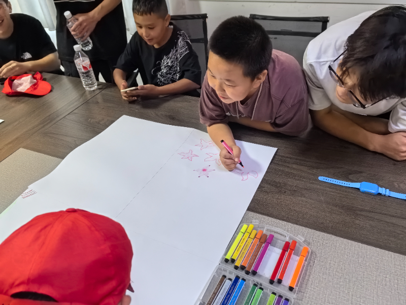 全體小朋友們一起畫畫,盡展小朋友們的童真與想象力,孩子們拿著彩筆在畫紙上盡情描繪,現場滿是專注與耐心。