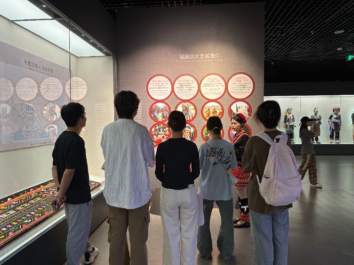 走進(jìn)中國(guó)瑤族博物館:觸摸瑤族非遺的千年脈絡(luò) 在連南中國(guó)瑤族博物館內(nèi),“匠心筑夢(mèng)團(tuán)” 成員沉浸式學(xué)習(xí)瑤族非遺文化體系。館內(nèi)陳列的瑤族服飾、銀飾鍛造、歌謠樂(lè)譜等文物,系統(tǒng)展現(xiàn)了瑤族織染、刺繡、歌舞等非遺技藝的歷史淵源。團(tuán)隊(duì)成員通過(guò)講解員的解讀,深入了解瑤族 “耍歌堂”“長(zhǎng)鼓舞” 等國(guó)家級(jí)非遺項(xiàng)目的文化內(nèi)涵,以及連南作為瑤族文化生態(tài)保護(hù)區(qū)的獨(dú)特價(jià)值。此次沉浸式學(xué)習(xí),讓團(tuán)隊(duì)成員在文物與講解的雙向熏陶中,觸摸到瑤族非遺文化的厚重底蘊(yùn),也讓傳承非遺技藝、守護(hù)文化根脈的使命在實(shí)踐中愈發(fā)清晰。