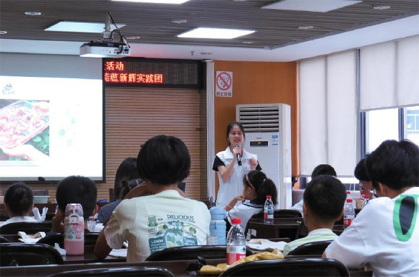 圖為實踐團成員為社區青少年講解植物拓染技藝。鄧禹晴 供圖