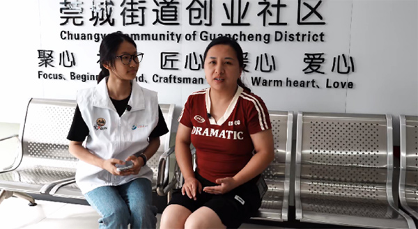 圖為實踐團成員對社區居民的采訪。蘇穎彤 供圖