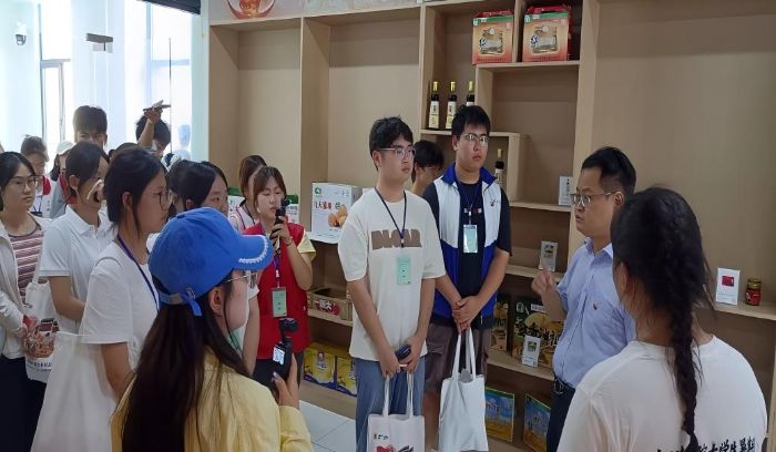 圖為小崗村博士工作站雷博士在向實踐隊介紹鳳陽縣農產品電商助農項目 高子豪攝