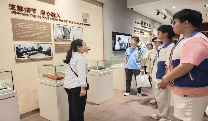 圖為實踐隊在沈浩同志紀念館內聽講解員講解沈浩精神 顧鼎張攝