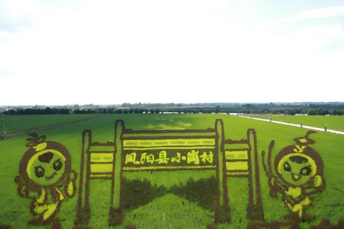 圖為小崗村試驗田內用不同顏色水稻所做稻田畫 高子豪攝
