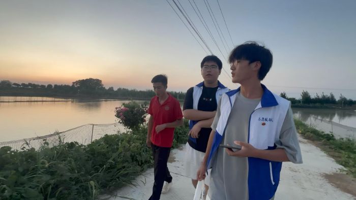 圖為實踐隊在池塘邊對小崗村生態(tài)振興的標桿企業(yè)的垚鑫小崗村生態(tài)甲魚養(yǎng)殖公司負責人進行采訪 方國慶攝