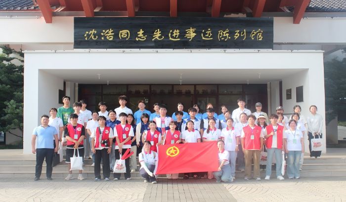 圖為第一天活動結束后實踐隊們在沈浩同志紀念館前的合影留念 高子豪攝