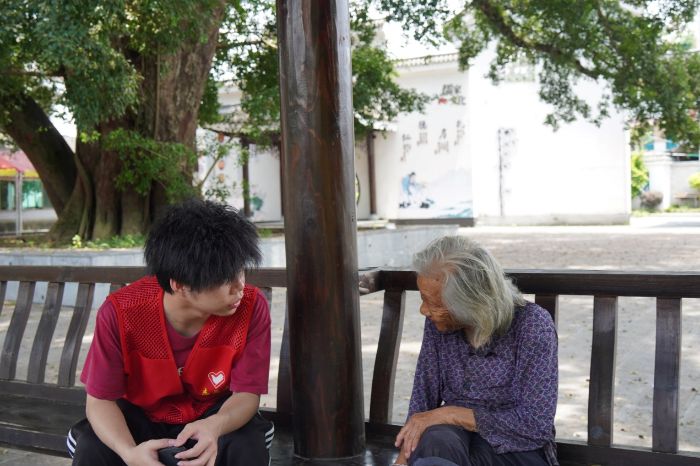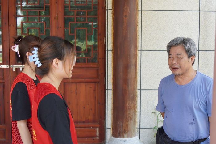 圖為成員向村民了解香杉閣和周邊發展的歷史。吳敏松 供圖